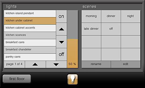Thomas David provides lighting and shade control solutions that range from a bank of exterior lights that turn on at night to every light and window covering in the home operating in unison from a single point of control. Lighting control systems add many benefits to a residence, from energy conservation to beautiful lighting scenes for every occasion. Thomas David has developed a lighting control interface that allows you to configure and change your own scenes, setup custom scheduled events, or control any light or shade in the house individually.
